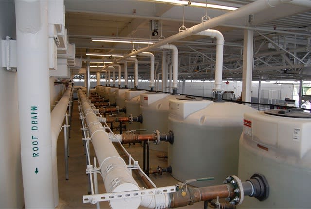 A water collection system collects rainwater and stores it to be used for fire pump testing and vehicle washes. Photo courtesy of Weston & Sampson
