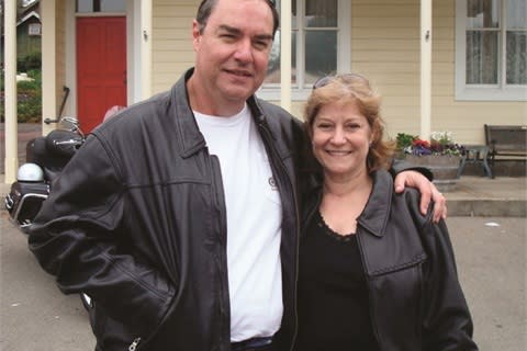 Dave and Michelle Head are pictured during a charity motorcycle ride.