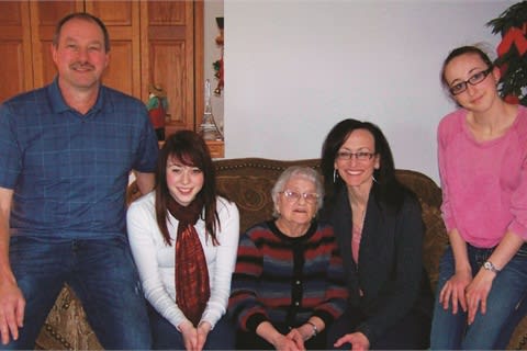 Pictured (l-r) are Kevin Schlangen and daughter Mandy, mother-in-law Louis, wife Jackie, and daughter Brianna.