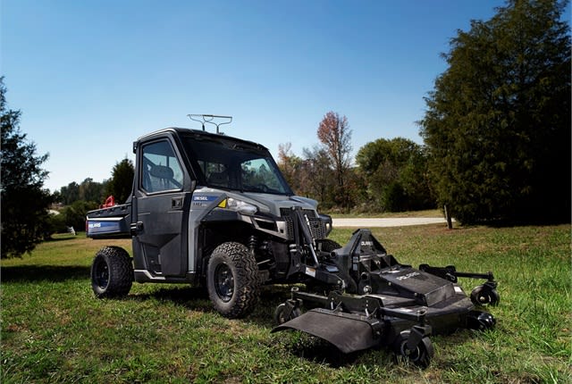 Polaris’ Brutus HDPTO is a utility vehicle built for general ground maintenance and heavy lifting tasks. In addition to the finishing mower (pictured here), the unit offers five other attachments.