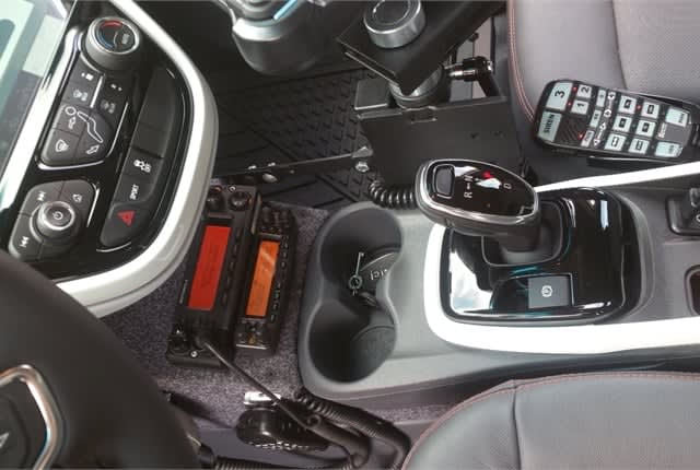 Upfitters custom-built a center console to hold a two-way radio. Photo courtesy of Hyattsville Police Department