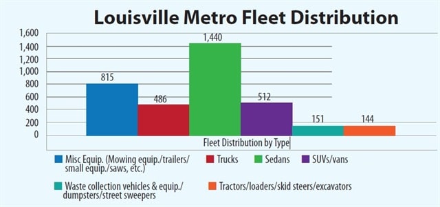 Louisville Metro’s fleet now consists of about 3,600 vehicles and pieces of equipment.