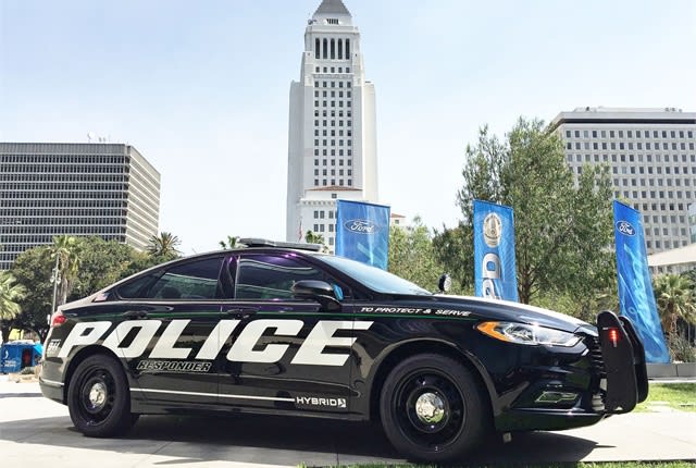 Ford revealed the Police Responder Hybrid Sedan at Los Angeles Police Department headquarters in downtown Los Angeles on April 10. Photo: Thi Dao