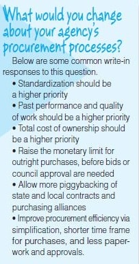 Beyond vehicle and equipment needs, Joseph Clark, fleet management director for the City of Durham, N.C. suggests working closely with procurement on service and items related to maintenance and repair. “We work with procurement to establish contracts for repairs, parts and supplies, fuel, tires, lubricants, etc.,” he said. “Our procurement department wants to help us be successful, so by providing them with some guidance and direction about our needs, they are better able to serve us.”[PAGEBREAK]