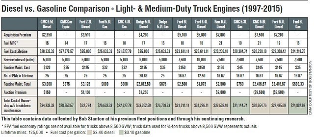 This diesel vs. gasoline comparison chart includes light- and medium-duty data from 1997 to 2015.