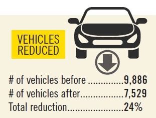 Once fleet staff determined which vehicles could be eliminated — but not missed — they set a utilization standard. If a vehicle wasn’t driven 1,000 miles per month or 80% of business days in a month, it was pulled.