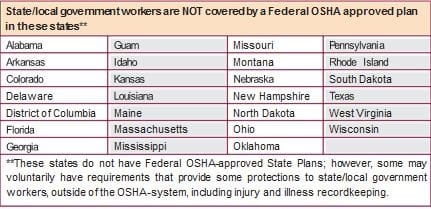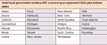 State and local government workers in half of all states are covered by a federal OSHA-approved plan.