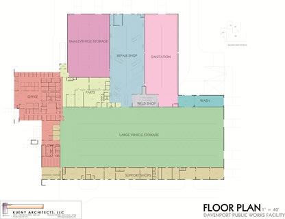 Kueny Architects worked on the planning and design of the City of Davenport, Iowa's Public Works fleet facility.