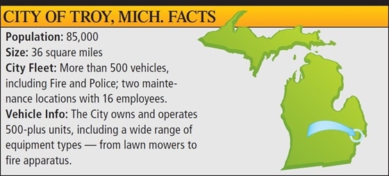 With an annual fleet budget of $7.5 million, the City of Troy's fleet department includes 16 full-time employees on a two-shift operation and two maintenance facilities. Lamerato manages a fleet of more than 500 pieces of equipment used for 15 public services departments, including fire, police, public works, engineering, assessing, building, and parks and recreation personnel.