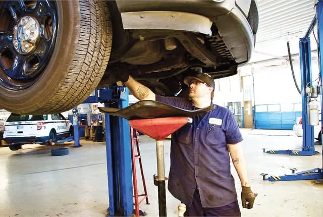 The City of Tulsa, Okla., handles most of its own warranty work for Ford vehicles, but outsources these jobs if technicians are too busy. Pictured is Technician Sean Hawkins. Photo courtesy of City of Tulsa