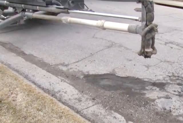 The RA-400 patching boom extends and retracts, providing a wide patching range. Using a joystick in the truck cab, the operator controls the four-step spray injection process. Screenshot courtesy of City of Lincoln