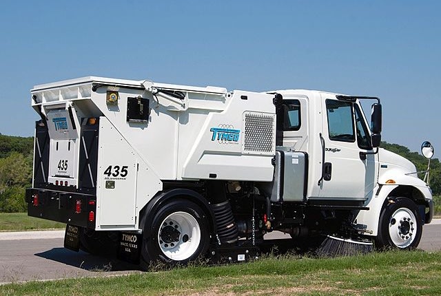 TYMCO’s Model 435 mid-size street sweeper uses a regenerative air system. Photo courtesy of TYMCO