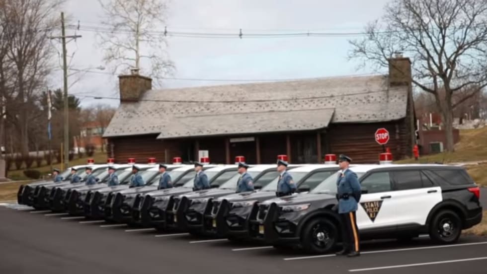 The New Jersey State Police debuted 10 new retro-style vehicles featuring a single overhead emergency light and throwback logo inspired by troop cars used in the 1960s.