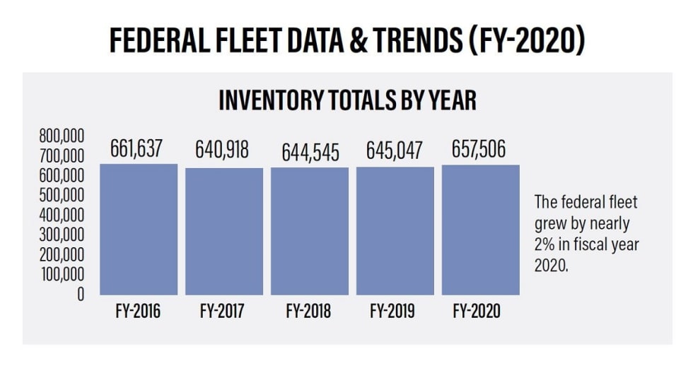 The federal fleet increased by nearly 2% in 2020. Meanwhile, utilization has decreased among passenger vehicles, according to data from the U.S. General Services Administration.