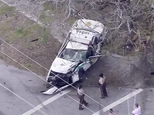 A Miami-Dade police officer was injured March 21 after a pursuit. Screenshot via Local10.com.
