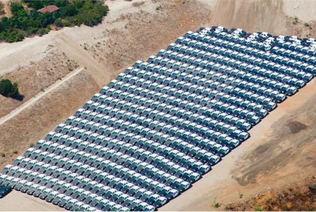 After Ford discontinued the Crown Victoria, fleets and Police Departments around the country began testing other vehicles to find a replacement and/or stockpiling Crown Vics to delay the decision. One dealership in Southern California decided to help out its customers by stocking up on 1,500 Crown Victorias to sell. That's a photo of just some of these vehicles above.