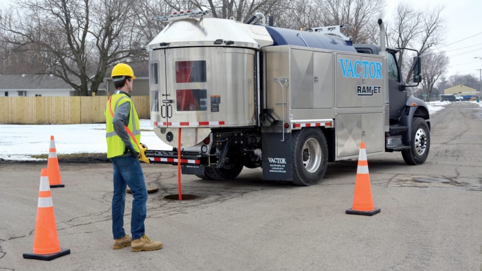 The new Vactor Ramjet truck-mounted water jetter features IntuiTouch technology that delivers improved operating ease, quick accessibility to key information, and greater control.