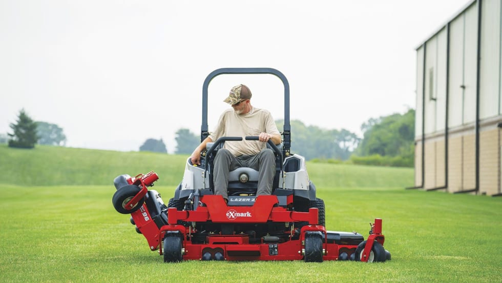 New features for Exmark’s Lazer Z Diesel mower include a 96-inch cutting deck and RED technology that virtually eliminates governor lag for better overall mowing efficiency.