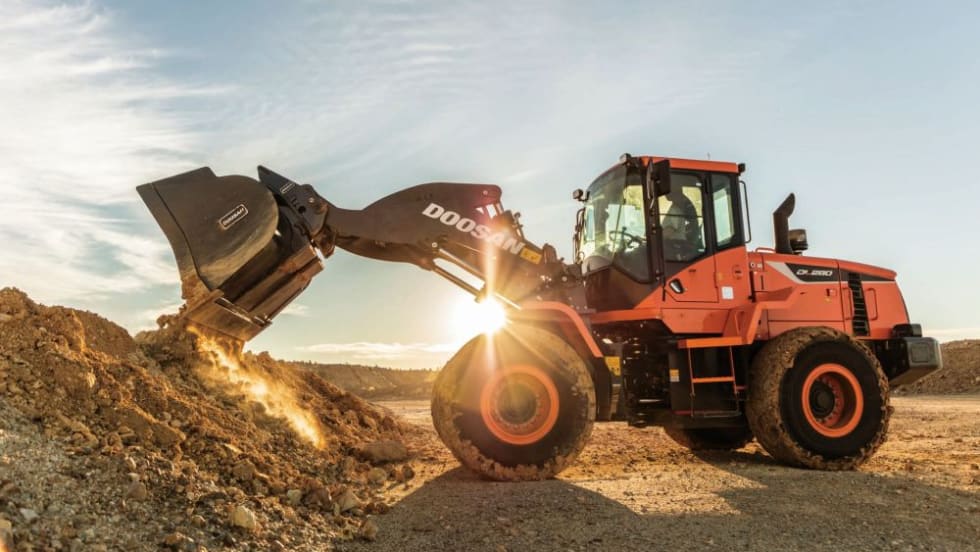 The Doosan DL280-5 model includes several unique features, such as a new joystick for improved productivity and easier operation and an optional heavy-duty axle.