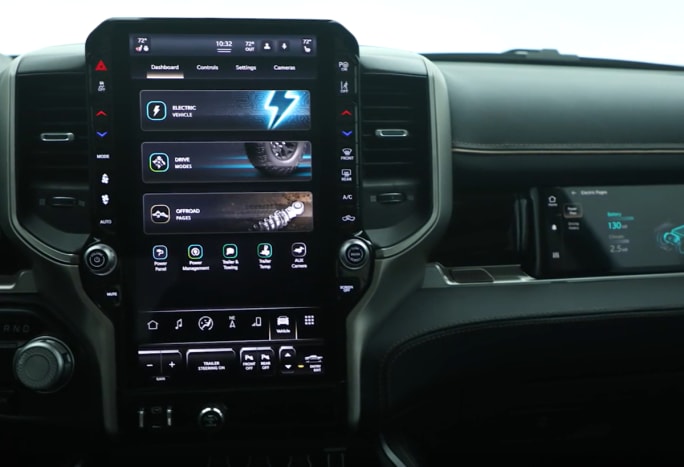 The 2025 Ram 1500 REV features a Uconnect 5 system with a new 14.5-inch touchscreen.
