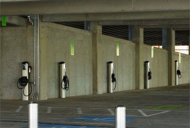 Photo of EV charging station in Hillsboro, Ore., via Wikimedia.