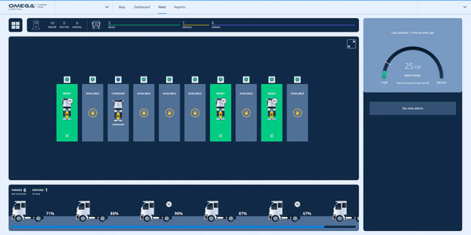 AMPLY's OMEGA charge management system allows fleet managers to oversee all EV charging stations and vehicles in real-time.