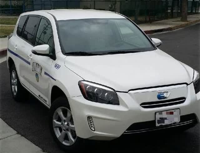 The city's "green" fleet currently consists of hybrids, compressed natural gas vehicles, and electric vehicles, including this Toyota Rav4 EV. Photo courtesyof City of Anaheim