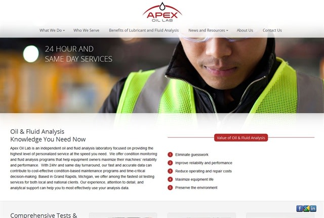 Screencapture of Apex Oil Lab website