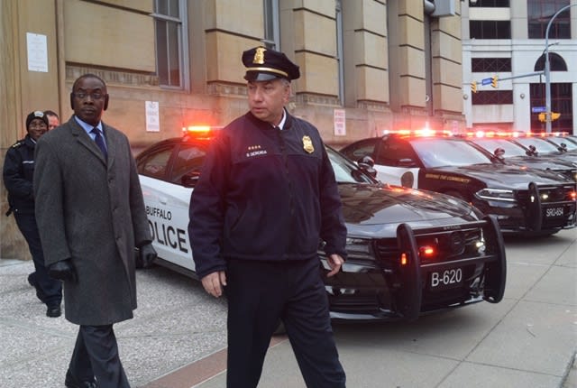 Buffalo Mayor Byron Brown and Buffalo PD Commissioner Daniel Derenda with the new Chargers. Photo courtesy of City of Buffalo