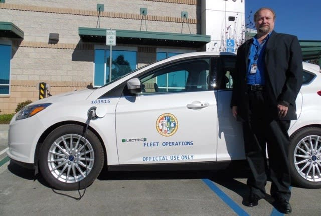 Fleet Manager Pete Bednar is pictured here with one of the county's electric vehicles. Photo courtesy of Ventura County