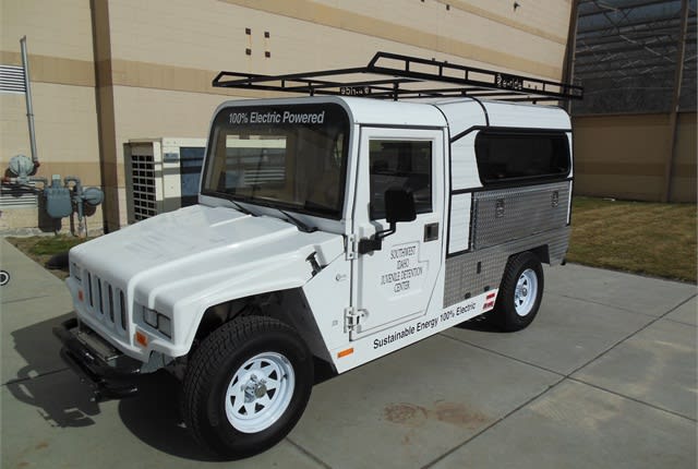 The e-ride Industries EXV2 Patriot is a low-speed, 100% electric work truck that will be used by SWIJDC around the County campus, primarily for thrice-daily trips to the Dale Haile Detention Center to pick up meals for the juvenile detainees. At a cost of approximately two cents a mile to operate, the EXV2 Patriot features a max speed of 25mph and can go up to 55 miles on a single charge.