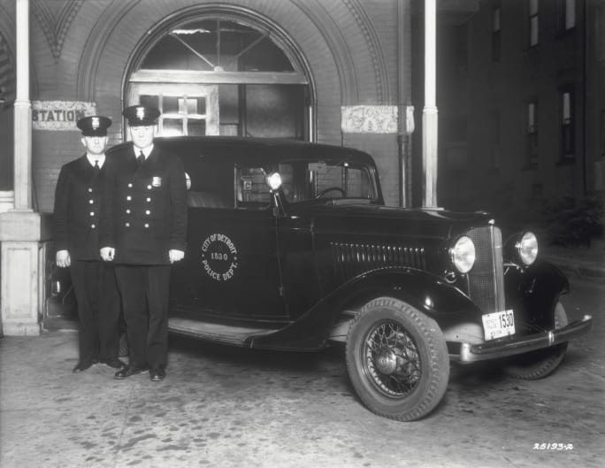 A 1933 Chevy Standard Six City of Detroit police car.