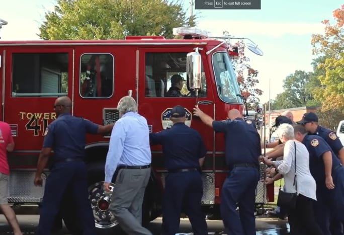 The “push-in” ceremony took place on January 30. “The tradition dates back 150-200 years ago when fire apparatus where horse drawn. The firefighters would take the new fire engine, or ladder truck, and push it back into the fire station,” Chief Dorian Flowers says in an interview by the city.