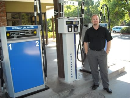 Sgt. Mike Nelson fuels his police vehicle, one of the 25 vehicles with AIM2 devices installed.