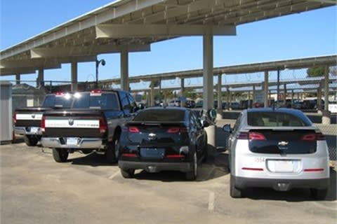 City of Sacramento Fleet has four electric vehicle (EV) chargers housed under the new solar canopy, with plans for additional EV chargers at the other solar installations. These chargers will be fed energy generated by solar power from the project. Fleet Manager Keith Leech commented, "The completion of the new solar-powered EV chargers corresponds perfectly with the City's Fleet having recently received four Chrysler plug-in hybrid electric (PHEV) Ram 1500 pick-up trucks and two Chevrolet PHEV Volts funded from the Federal DOE Clean Cities American Recovery and Reinvestment Act."