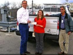 Curtis Donaldson, founder and CEO of CleanFUEL USA, presents ARRA funds to Ashley Williams, the City of Temple’s Sustainability and Grant Manager, and Sam Weed, Superintendent of Fleet Services. Photo courtesy CleanFUEL USA.
