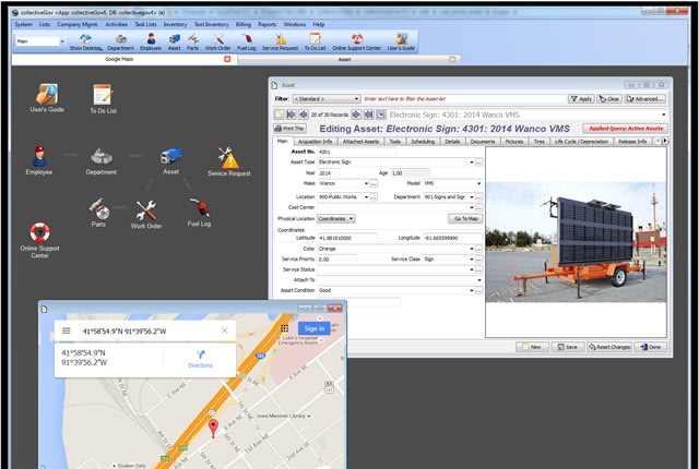 Some of the government-focused feature sets in the new product include: independent tracking of locations and departments, asset replacement forecasting, physical location and mapping, easy exporting of work order data to be used by accounting systems, cost center management, flat rates for services, and the tracking of exempt and non-exempt license plates.