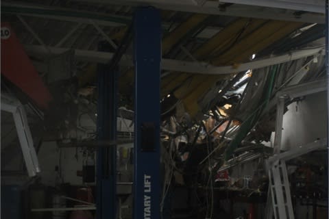 Vehicle lifts prevented the roof from falling to the floor, said Undersheriff Jon Hess of Kent County. Photo courtesy Kent County Sheriff's Department.