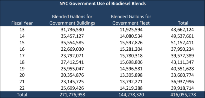 Total Biodiesel Blends Fuels used by NYC Government Operations since FY13.
