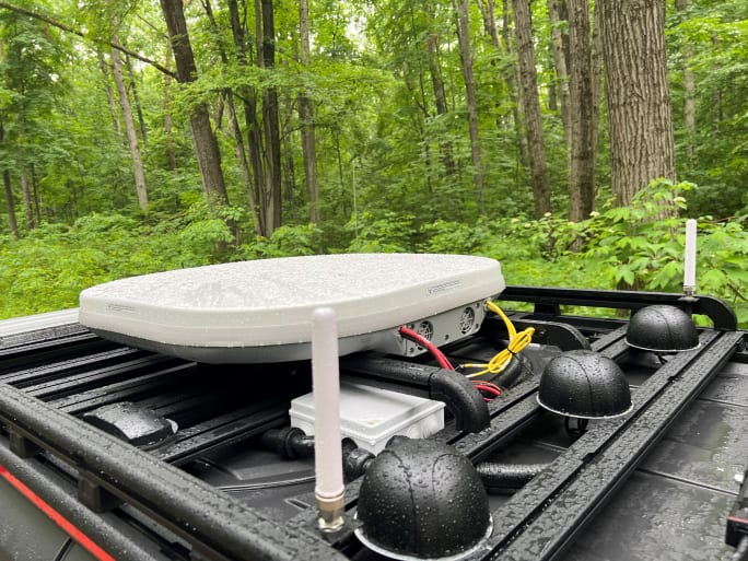 Additionally, it's equipped with a HyphaCap, which allows users to connect to the HyphaMAP and maintain network connection up to two to three miles away from the vehicle. The Cap is a portable device that can be carried or left in elevated positions to create a large mesh network.