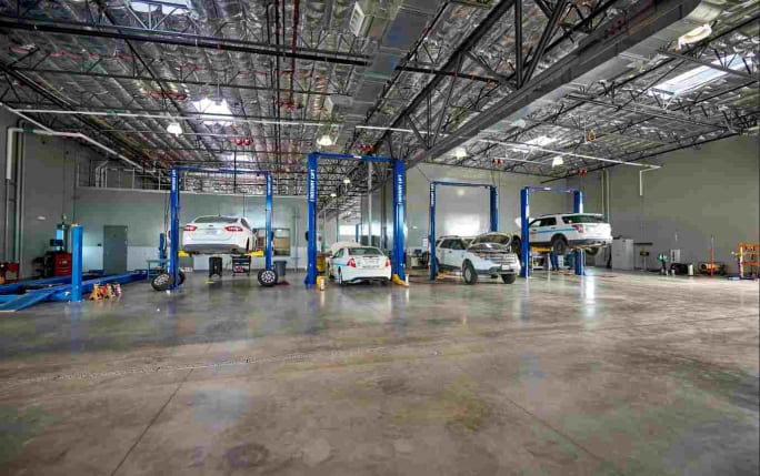The service center features three heavy vehicle pull-through bays and 12 light vehicle bays.