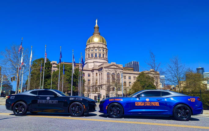 The Motor Carrier Compliance Division of the Georgia Department of Public Safety was also issued a Camaro. It's seen here in front of the state capital building, alongside one of the Georgia State Patrol Camaros.