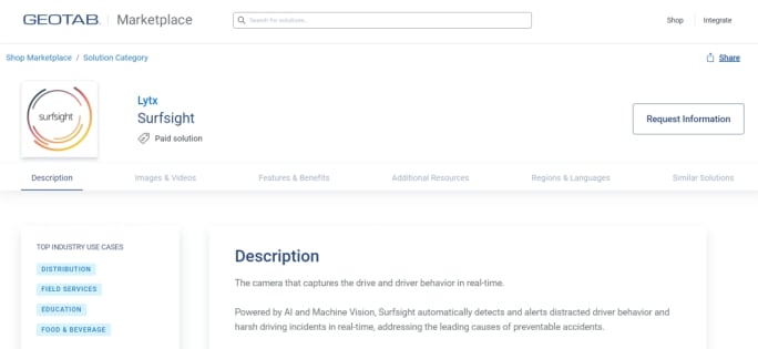 As the first solution available through the new Geotab Order Now program, customers can purchase the Surfsight camera solution directly from within the MyGeotab platform, which will then be fulfilled by an authorized Geotab reseller. To provide customers with a streamlined and unified experience, Geotab will provide ongoing technical support for the Surfsight offering and additional third-party solutions that join the program.