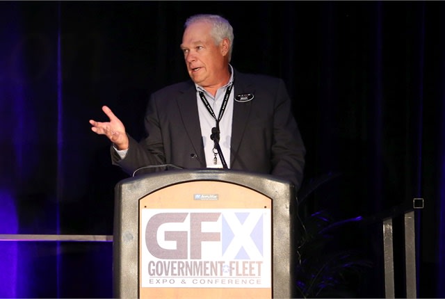 Following a tribute from Bobit Business Media, Brian Bowden gave a speech at the Government Fleet Expo and Conference (GFX) on June 13. Photo: Natalia King