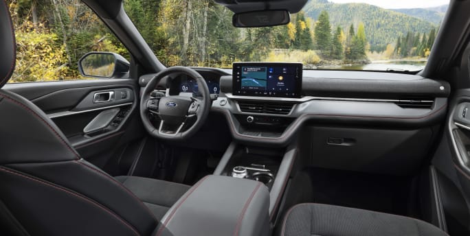 The new 2025 Explorer lineup – from Active, to the ST-Line, ST, and Platinum – has a more refined cabin and introduces the new Ford Digital Experience infotainment system.