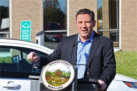 ELLICOTT CITY, MD - Howard County, Md., unveiled its new electric vehicle charging station for public and county fleet use on Nov. 7. County Executive Ken Ulman arrived at the ceremony driving the County's first extended-range electric vehicle, the Chevrolet Volt, according to a release from the county.