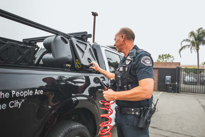 The Police Package includes Active Cargo System (ACS) FORGED bed rack, standard GearPOD, the extra-large GearPOD XL, and HydroPOD that holds 4.8 gallons of pressurized water and the HeadBANGER that prevents in-bed loads from colliding with the rear cab glass.