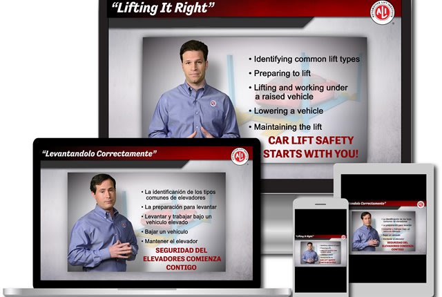 “ALI and our member companies take our responsibility to technicians, managers, dealers and shop owners very seriously. After all, their safety is riding on our lifts every day,” said R.W. “Bob” O’Gorman, ALI president. “We have supported the training of millions of lift operators over the last 30 years — we’ve distributed more than 3 million Lifting It Right manuals alone. By significantly lowering the price of the online course and offering a Spanish version for the first time, we hope to reach even more people.”