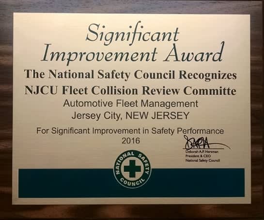 New Jersey City University's (NJCU) fleet reduced its preventable collisions by 78% in 2015, which earned the university’s Fleet Collision Review Committee the National Safety Council's award for significant improvement in safety performance, according to Patrick Bartole, CAFM, automotive fleet manager.