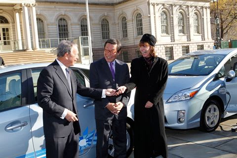 As part of the demonstration program, two Prius Plug-in Hybrid vehicles will be handed over to the NYCDOT and three to the Port Authority to be used in their fleets.